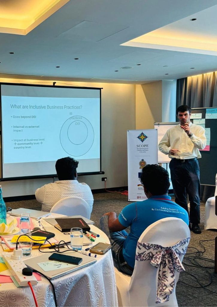 From May 2023 to July 2025, the European Chamber of Commerce of Sri Lanka (ECCSL) implemented its Inclusive Business Practices project in partnership with the Strengthening Social Cohesion and Peace in Sri Lanka (SCOPE) programme. SCOPE is co-financed by the European Union and the German Federal Foreign Office and implemented by the Deutsche Gesellschaft für Internationale Zusammenarbeit (GIZ) in partnership with the Government of Sri Lanka.